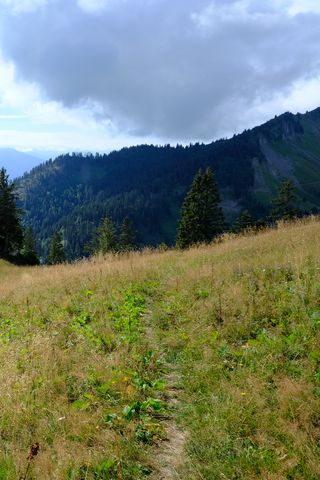 Download 320x480 mountains, path, trees, grass, landscape wallpaper, background samsung galaxy ace gt-s5830, sony xperia e, miro, htc wildfire s, c, lg optimus